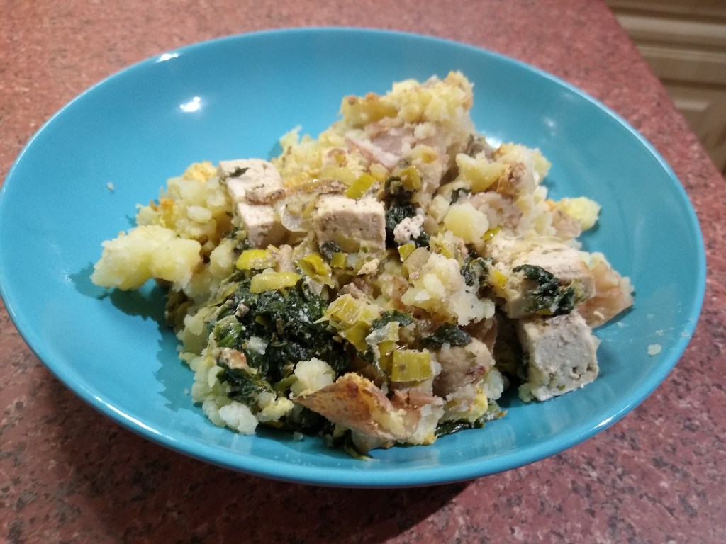 - Gently heat the olive oil in a medium pan. Add the leeks, spinach, mushrooms, rosemary and tarragon to the pan, stir until the spinach wilts down. It will go much smaller than it starts out.