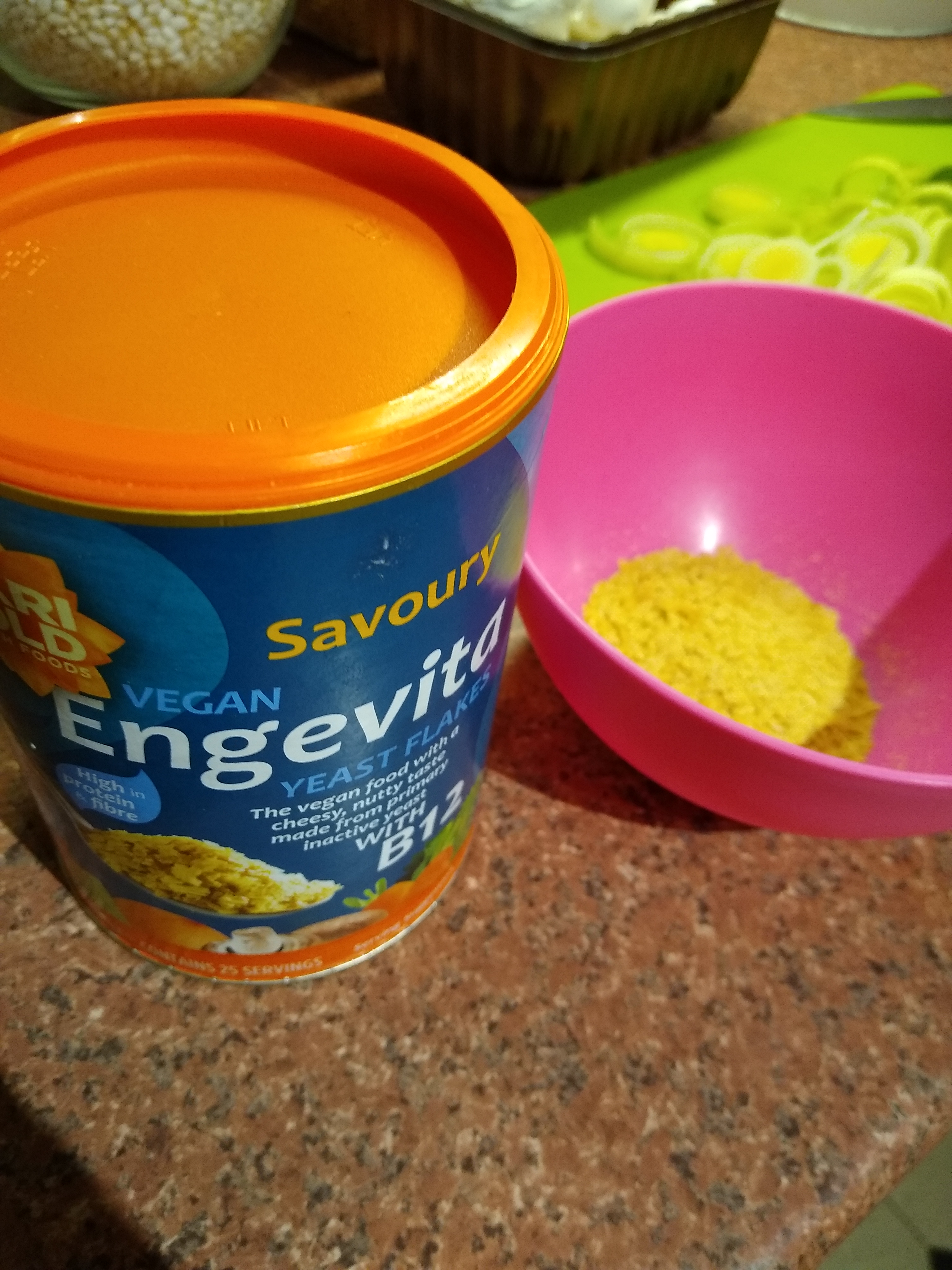 - You can get nutritional yeast from health food shops and it gives a slightly cheesy/nutty flavour.