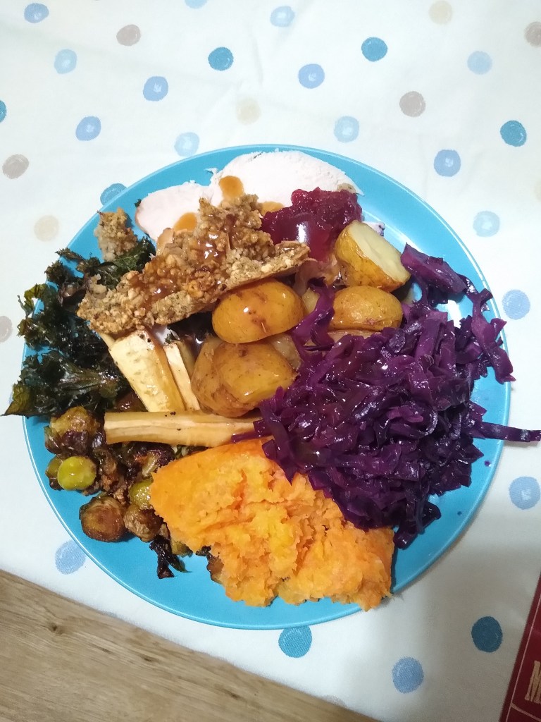 Roast turkey (firecracker vegetable parcel for my vegan daughter).