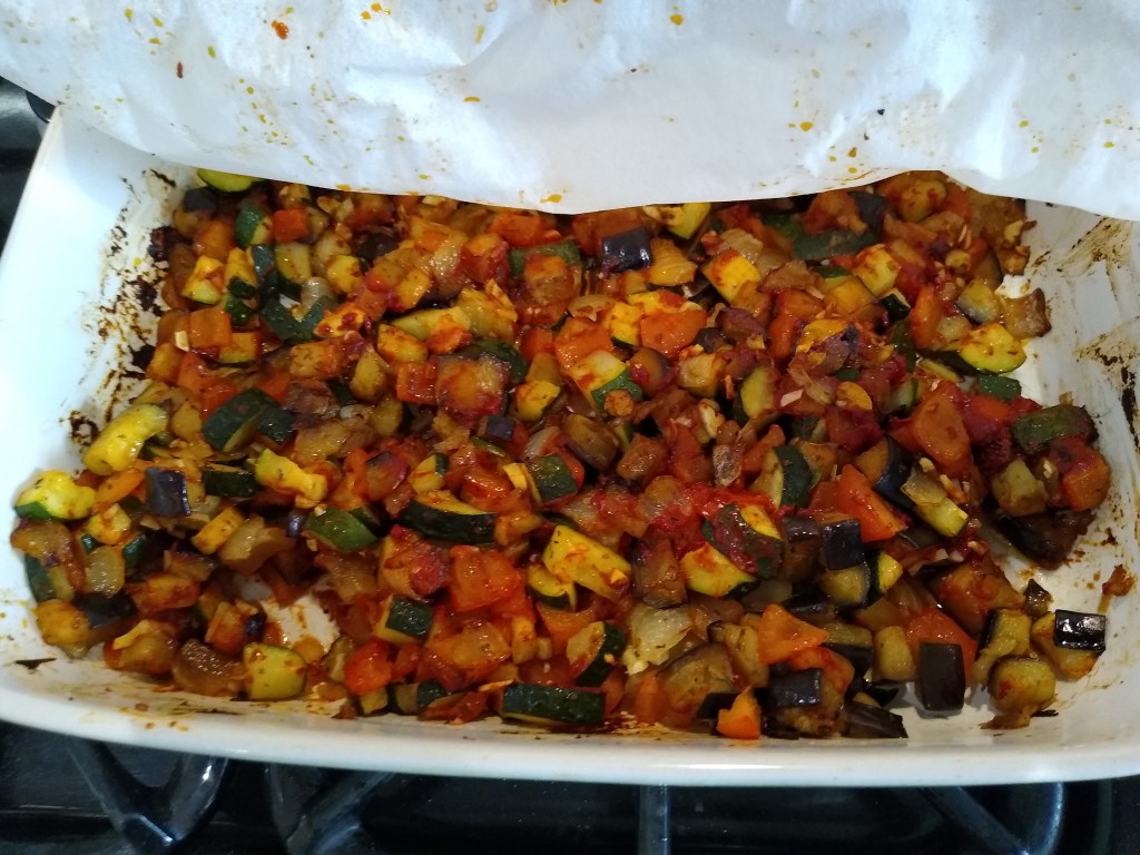 This is something of a national dish so…no pressure…gulp. The key is to cook the vegetables separately before they go in the oven to finish. Because they all have different cooking times, if you fry them altogether then some will go mushy before the others have finished and you’ll have a smooshy mess that isn’t appealing.