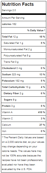 The nutritional content shown is for the carrot bacon only and not the bun, tomatoes and sauce shown in the serving suggestion pictures.